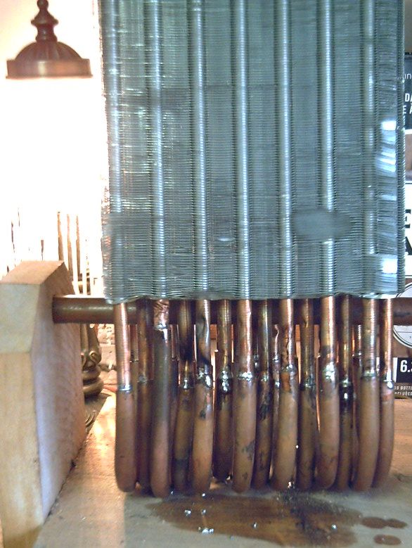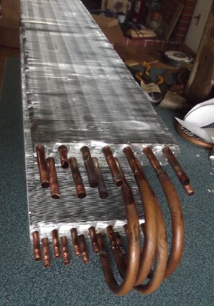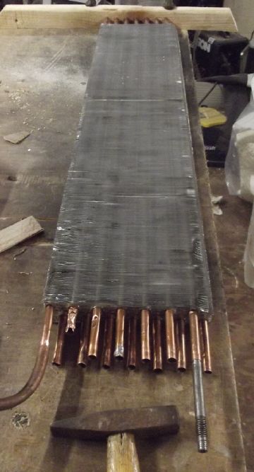 The project continues at a snail's pace. This month I soldered on the pipes to join the two sections of heat exchangers, using my smallest propane torch.